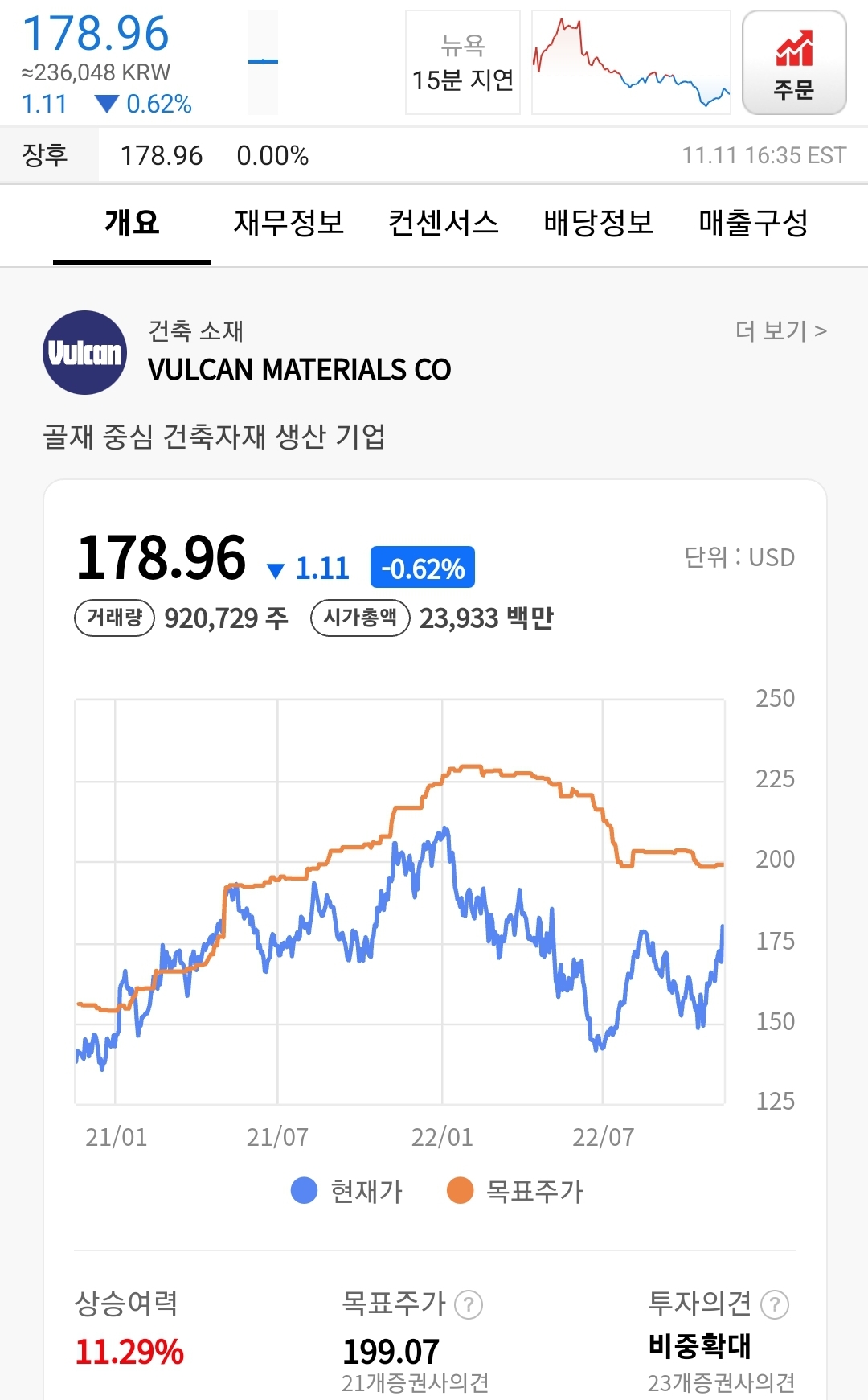 건설용 골재의 미국 최대 생산업체인 아스팔트와 시멘트는 VMC에 앞으로 수혜를 줄 것입니다.