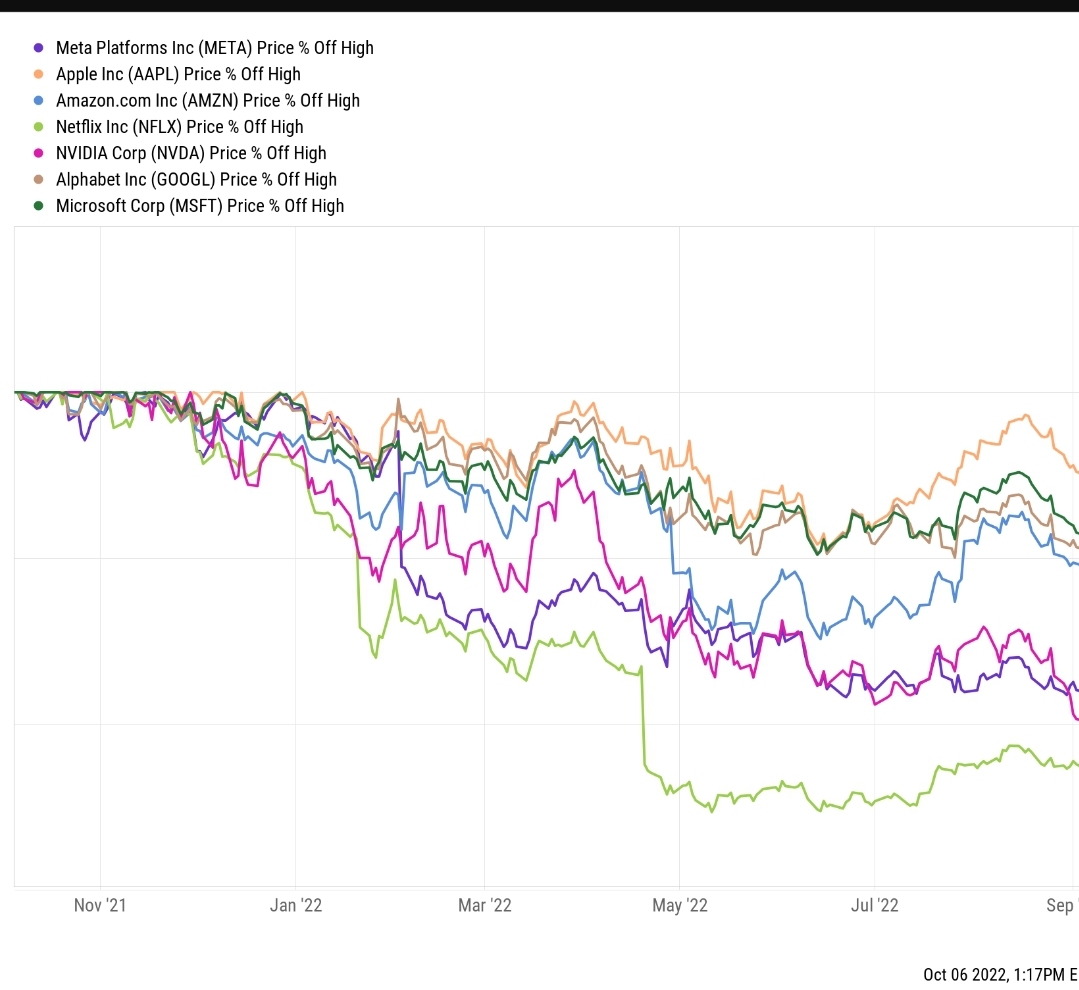 Netflix ( NFLX ) 는 65% 하락했고 Meta ( META )는 60% 그리고 Nvidia ( NVDA ) 주가도 60% 하락했다